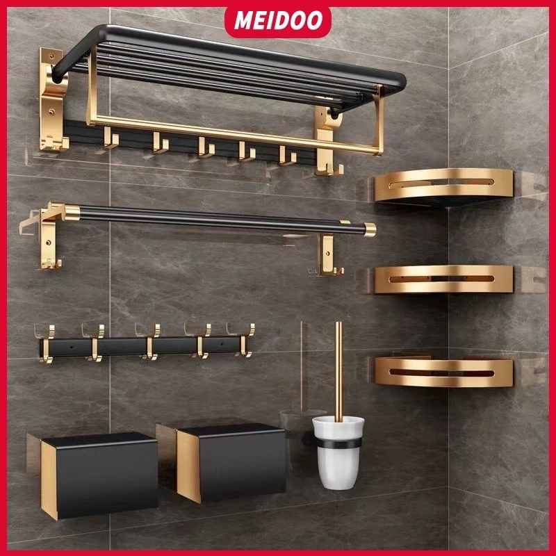 Rack de armazenamento de banheiro em alumínio dourado preto MEIDOO