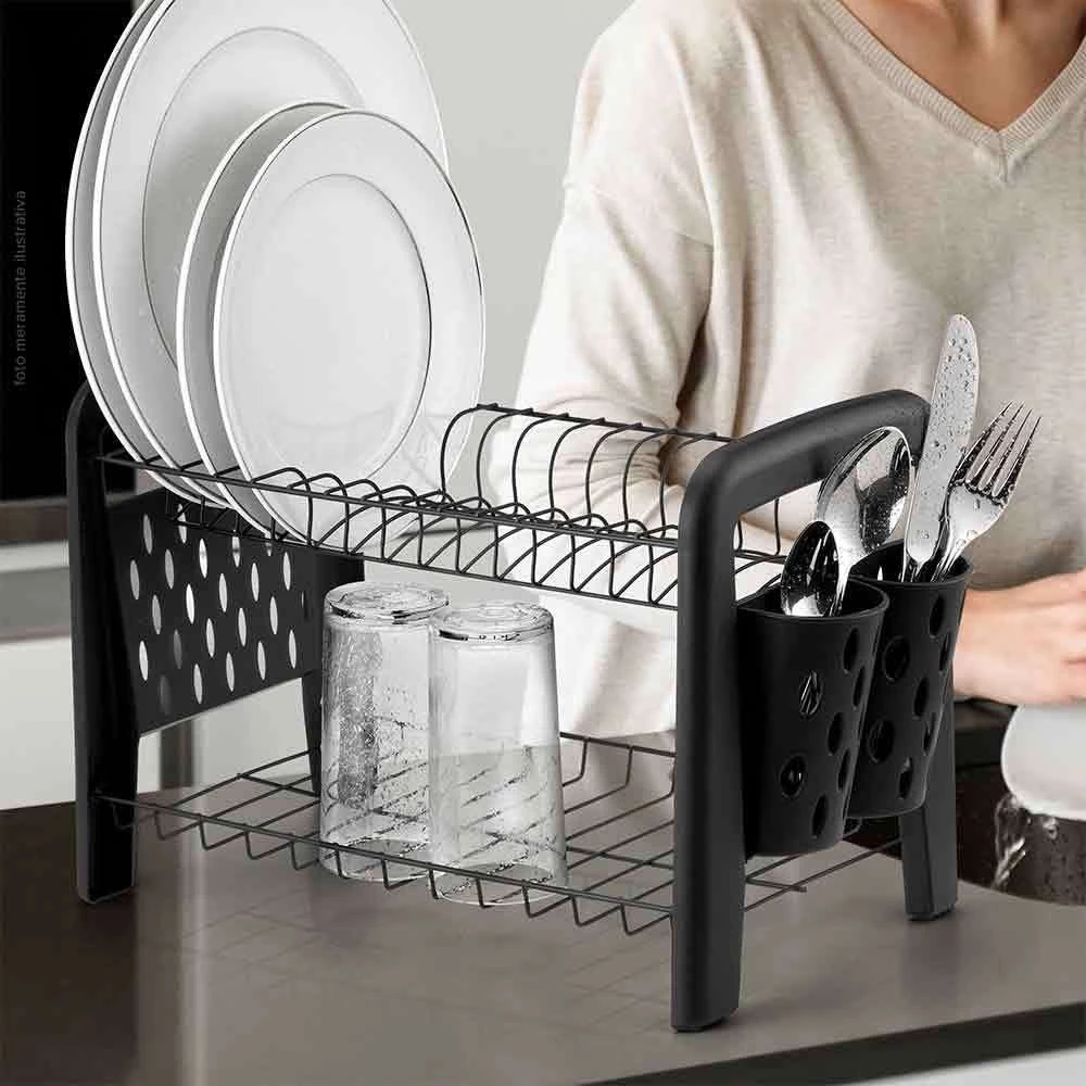 Escorredor Louca Secador Porta Talheres Não Enferruja Preto