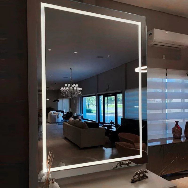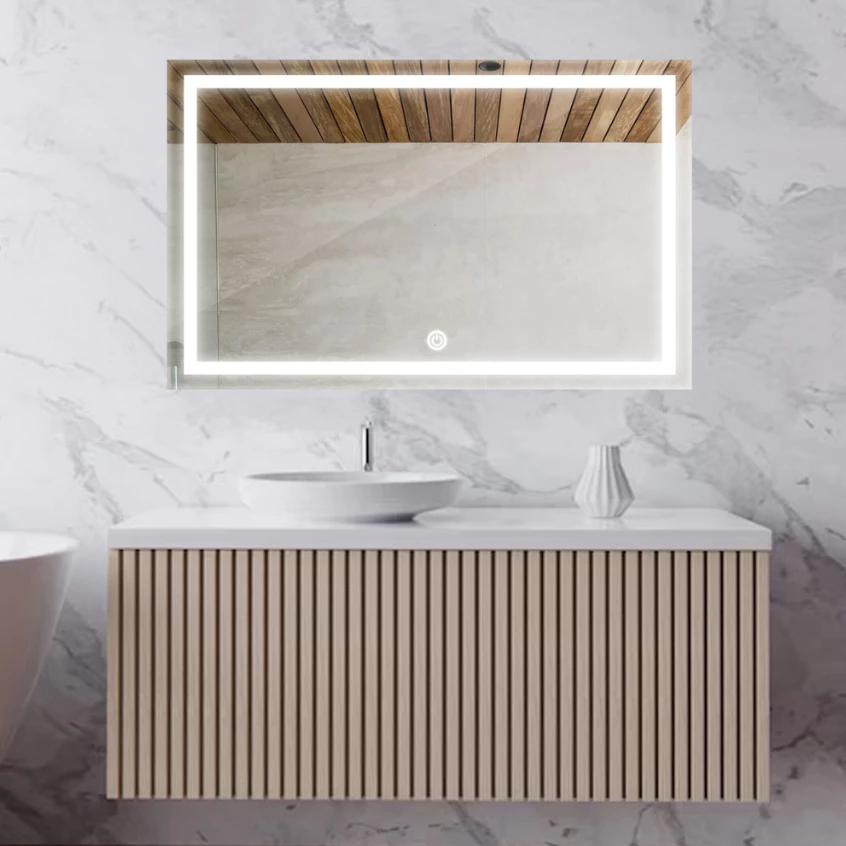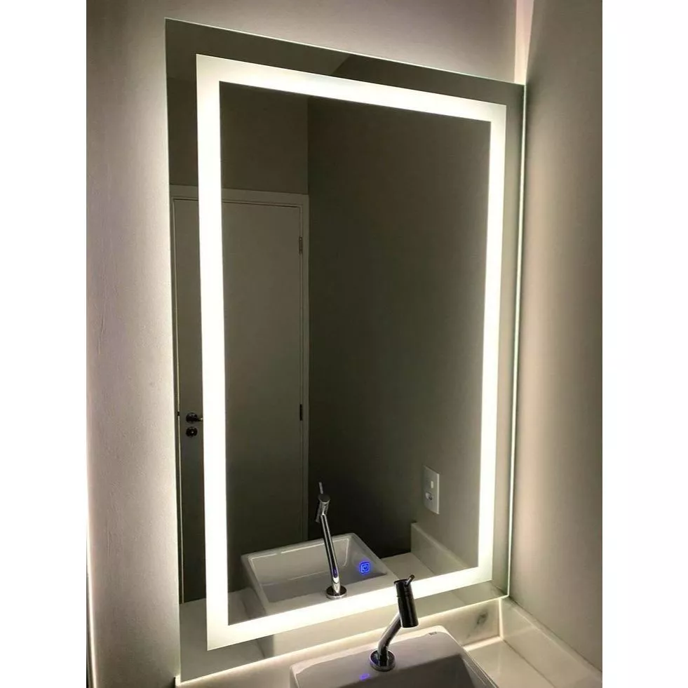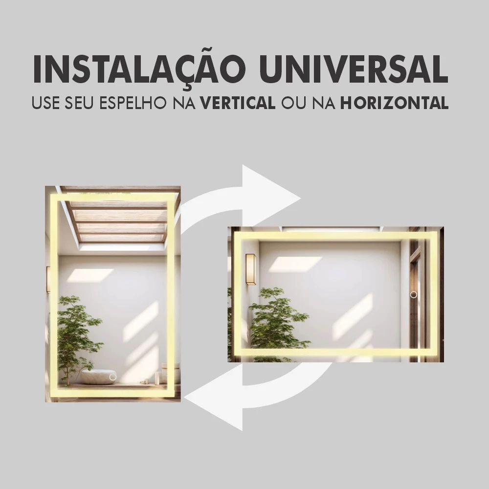•Espelho Retangular com LED Jateado 80×50 cm – Lapidado Premium com Touch Screen ✨