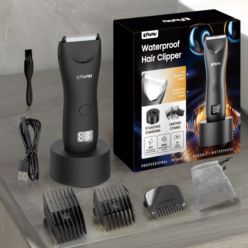 Máquina de Cortar Pelos Sem Fio Impermeável para Virilha Masculina com Luz LED Luz Spot